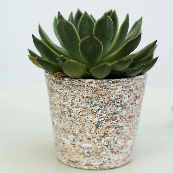 Оригинальный дизайн с разноцветными вкраплениями придает кашпо из керамики оригинальный вид. Благодаря необычному оттенку оно эффектно смотрится в интерьере. Поверхность кашпо матовая и приятна на ощупь. Изделие не будет оставлять следов и царапин на мебели. Маленькое керамическое кашпо отлично подходит для размещения на столах, полках, узких подоконниках или в нишах. С его помощью можно стильно оформить уголок с маленькими комнатными растениями.