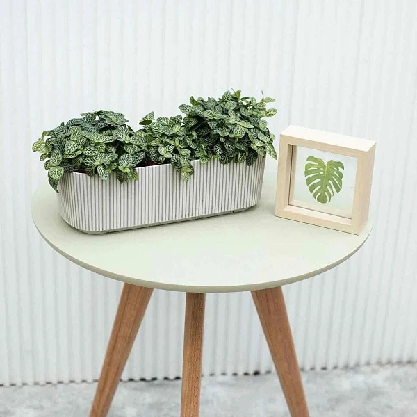 Овальное кашпо – прекрасный выбор для выращивания нескольких растений вместе. В него можно высадить одинаковые виды, а можно создать интересную композицию, объединив разные растения. Кактусы, суккуленты, миниатюрные Каллизии, Традесканции, Сингониумы, Сансевиерии, Фиттонии великолепно смотрятся в низких настольных кашпо. Стильный дизайн, универсальный цвет и матовая поверхность придают кашпо оригинальный вид. Оно удачно впишется в современный интерьер и станет украшением журнального столика, тумбы или узкого подоконника.