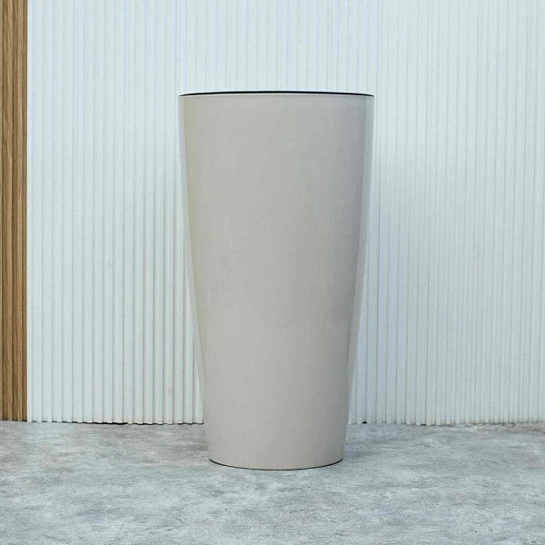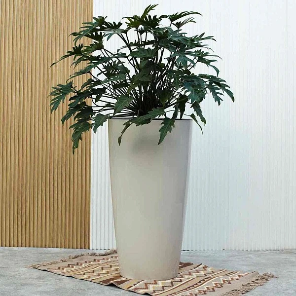 Большое высокое кашпо – находка для тех, кто хочет расположить растения на полу, не используя специальные подставки. Оно гармонично впишется в интерьер, не займет много места и подчеркнет красоту растений на фоне других элементов интерьера. У кашпо есть ручки, что облегчает уход за зеленью. В комплекте есть посадочная вставка, дренажные отверстия на дне можно проделать самостоятельно. Благодаря универсальному цвету напольное кашпо подходит для любого стиля интерьера.