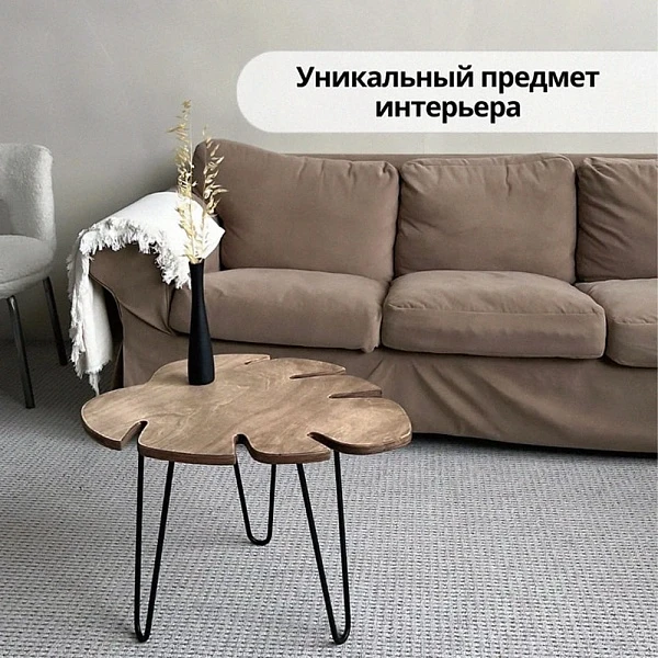 Журнальный стол играет важную роль в создании уютной атмосферы гостиной и в то же время акцентирует внимание на ее эстетике. Стол " Монстера Loft" выделяется своим уникальным дизайнерским решением и погружает в атмосферу элегантности и стиля. Опоры стола изготовлены из металла, что придаёт ему дополнительную прочность и устойчивость. Журнальный стол в виде листа Монстеры имеет компактные размеры, что позволяет легко вписать его в любое пространство. Этот стильный элемент интерьера особенно понравится тем, кто влюблен в растения.