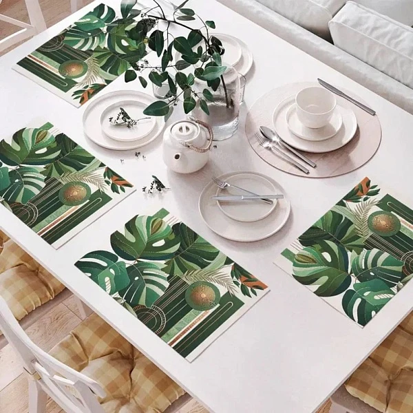 Сервировочные салфетки - это стильный с тропическими нотками элемент декора, который поможет создать уютную атмосферу за столом. Фактура ткани придает изделию однородную структуру и легкий шарм. Эти атрибуты не только украсят ваш стол, но и защитят его поверхность от повреждений.