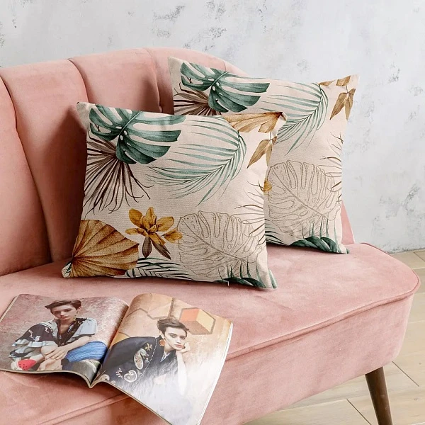 Листья пальмы и монстеры на декоративных наволочках принесут тропическую атмосферу в интерьер и добавят акцента. Изготовлены из долговечного и неприхотливого материала. Они не требуют особого ухода. Комплект из наволочек - подарок, который будет радовать своей яркостью и индивидуальностью.