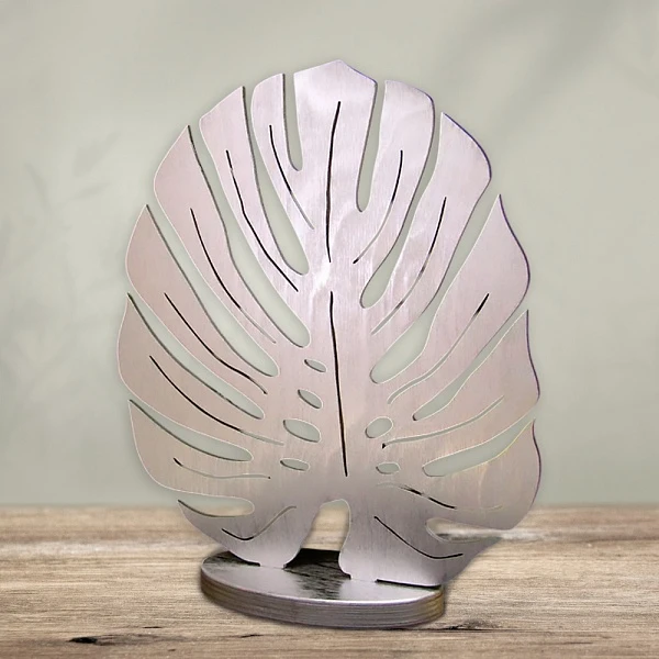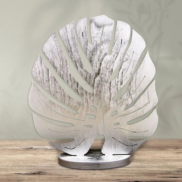 Элегантный деревянный декор "Лист Монстеры" для вашего дома, созданный в авторской мастерской Wood FrogDog. Эта изящная фигурка изготовлена из высококачественной березовой фанеры толщиной 4 мм и покрыта серебристой краской, при этом сохраняет натуральную текстуру и рисунок дерева. Статуэтка надежно устанавливается на овальной подставке, размеры которой составляют 14х8 см и толщину 1,5 см, что делает конструкцию устойчивой и удобной для размещения на любой поверхности. Резной дизайн фигурки создает красивые, изящные тени при солнечном свете или свете ламп и свечей, добавляя уют в вечернее время. Эта уникальная статуэтка станет оригинальным элементом декора в вашем интерьере, будь то гостиная, спальня или рабочее пространство.