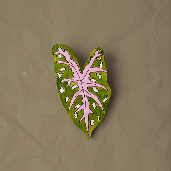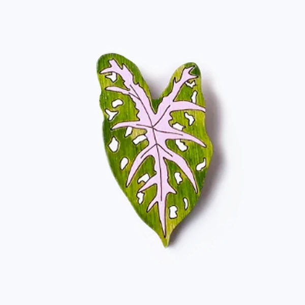 Деревянная брошь "Каладиум" ручной росписи. Светоустойчивые акриловые краски и покрытие лаком гарантирует долгий срок использования. Оригинальный флористический дизайн для тех, кто любит растения и хочет подчеркнуть свою индивидуальность. Брошь подходит для украшения одежды, сумок или рюкзаков и легко крепится на тканях любой плотности.