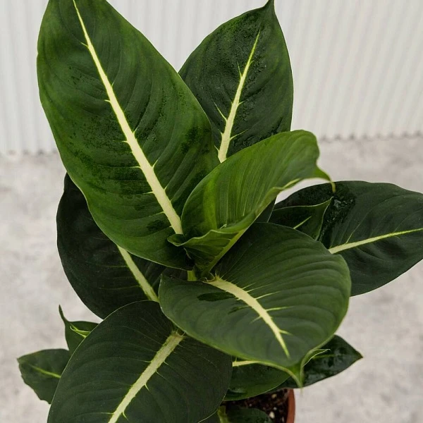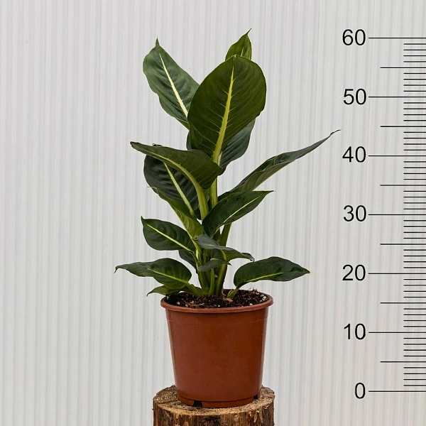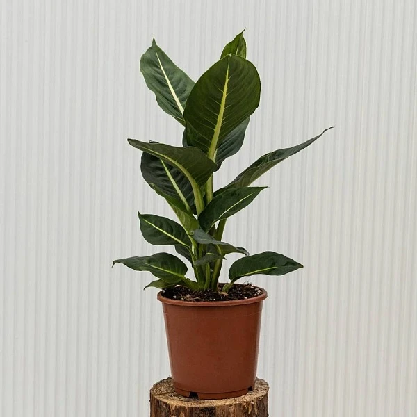 Эффектное декоративно-лиственное растение с крупными, слегка вытянутыми, заострёнными на концах листьями насыщенного зелёного цвета с ярко-жёлтыми прожилками. Хорошо кустится. Предпочитает яркий рассеянный свет, умеренный полив и повышенную влажность воздуха. Диффенбахия Грин Мэджик неприхотлива, подходит для современных интерьеров, оформленных в стиле минимализм, хай-тек или лофт. Также она будет хорошо смотреться в эко-интерьерах и скандинавских интерьерах.