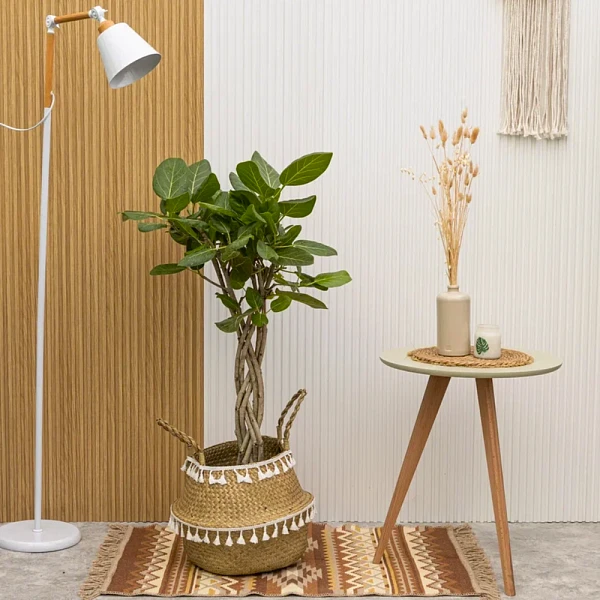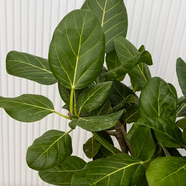 Величественное растение с ярко-зелёными листьями, которое подойдёт любому интерьеру. Оно имеет крупные кожистые листья с выступающими жилками, которые придают ему уникальный вид. Растение активно очищает воздух от вредных веществ и создает благоприятную атмосферу. Оно предпочитает яркое рассеянное освещение, повышенную влажность воздуха, умеренный полив. Ежегодно проводят формирующую обрезку.