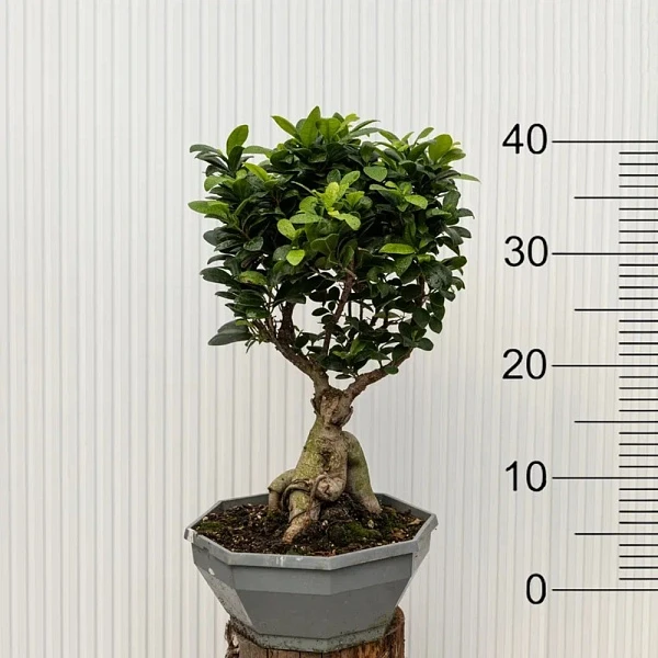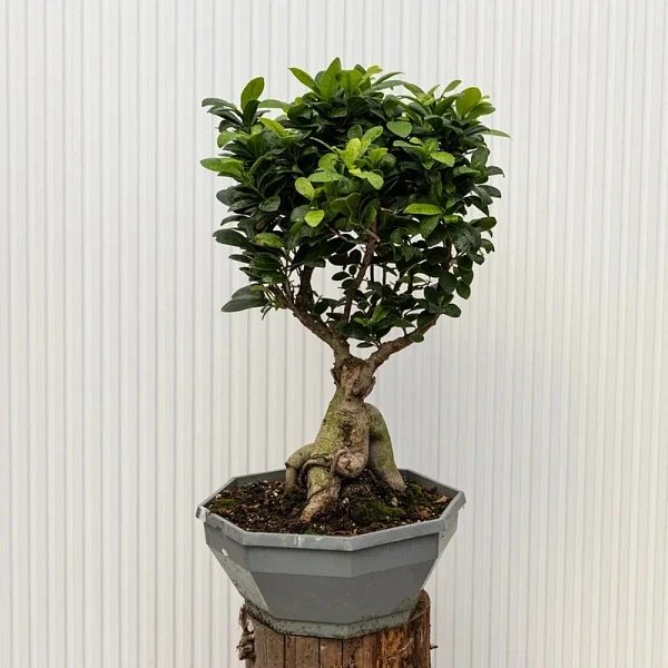 Популярная разновидность Фикуса приковывает взгляды своей внешностью. Его мелкие кожистые листья тёмно-зелёного цвета создают эффект густой листвы, а невысокий ствол продолжают выпирающие пышные корни. Это тропическое растение предпочитает тепло и свет, и легко адаптируется к домашним условиям. Благодаря своей выносливости и эстетичному виду Фикус Микрокарпа Бонсай станет прекрасным зелёным украшением любого интерьера, принесёт гармонию и спокойствие в дом.