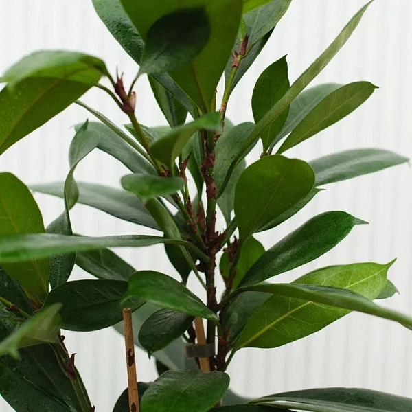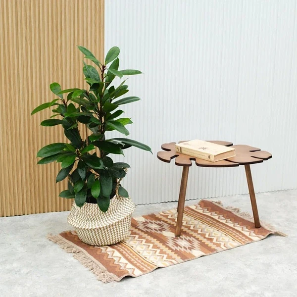 Декоративное комнатное растение имеет необычную двухствольную форму и крупные, кожистые листья темно-зеленого цвета с металлическим отливом. Эта разновидность Фикуса привлекает внимание своей эффектной внешностью. Чтобы ее сохранить, важно не ставить растение под прямые солнечные лучи. Фикус требуется умеренно поливать, не допуская застоя воды, резких перепадов температуры и холодных сквозняков.
