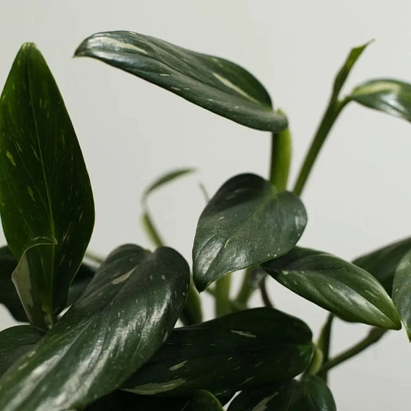 Живописная лиана с пестрыми, вытянутыми листьями, которые украшены кремовыми пятнышками, крапинками и полосками. По мере роста стелющиеся побеги можно пустить вверх, создав для растения вертикальную опору. Сорт с оригинальным окрасом листьев подойдет для новичков и разнообразит коллекцию растений опытных цветоводов. В уходе Филодендрон не доставит особых хлопот. Для хорошего роста он нуждается в ярком рассеянном свете, но может расти и в полутени. В весенне-летний период предпочитает регулярный и обильный полив, а зимой умеренный.