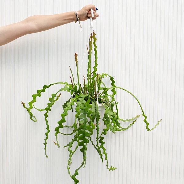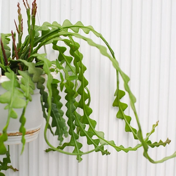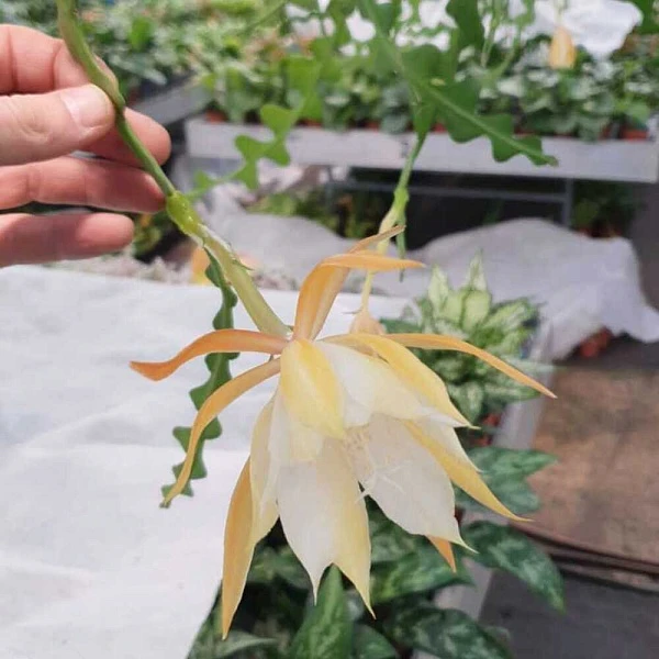 Изящный цветущий лесной эпифитный кактус с плоскими мясистыми тёмно-зелёными зигзагообразными ветвящимися стеблями. Его цветы довольно крупные и ароматные, обычно белые, желтые или розовые. Они распускаются ночью и закрываются утром. Растение предпочитает яркое рассеянное освещение, умеренный полив и хорошо дренированную почву. Эпифиллум Ангулигер часто используется в домашних условиях как декоративное растение благодаря своим эффектным цветам и необычной форме.