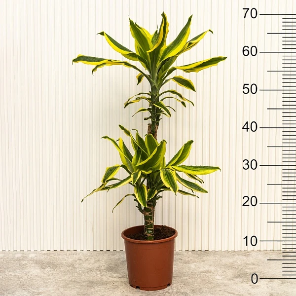 Жизнерадостный сорт драцены, неприхотливый, но требующий яркого освещения для сохранения интенсивной окраски. Данный сорт привлекает внимание своими пестрыми листьями – они сочно-зеленые с широкими продольными золотисто-желтыми полосками. Прекрасно подходит в качестве яркого сочного акцента для озеленения жилых и общественных помещений, офисных пространств, ресторанов и кафе.