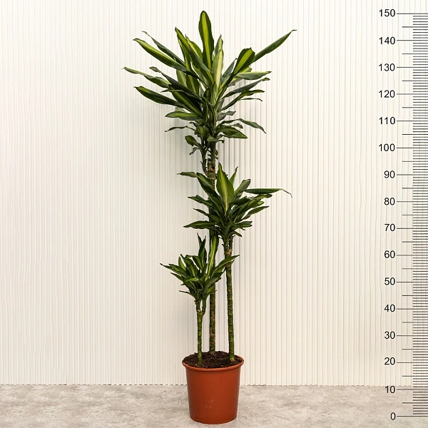 Популярный и очень неприхотливый сорт Драцены. Его декоративность обусловлена ярко-зелеными блестящими широкими немного волнистыми листьями с широкой желтой полосой по середине. Данный сорт теневынослив, может отлично расти и развиваться при ярком искусственном свете. Отлично подходит для озеленения коммерческих пространств: общественных зон, офисов, кафе и ресторанов.