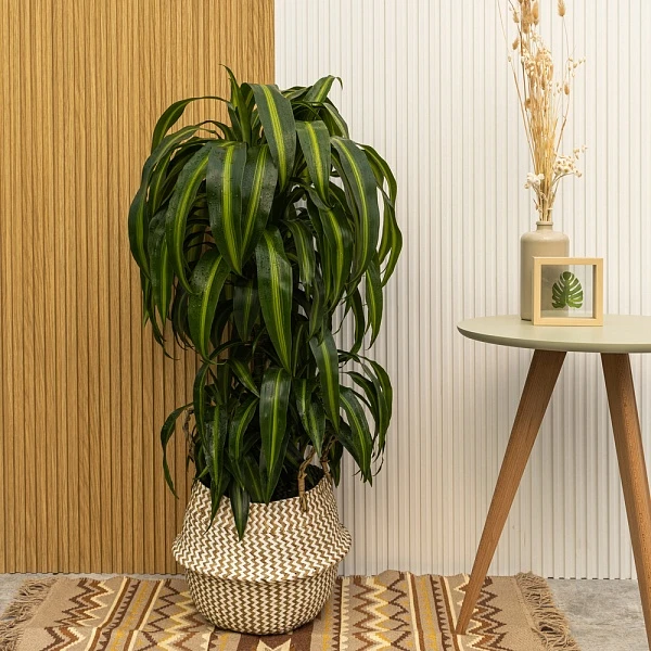 Очень декоративный и неприхотливый сорт с большой массой темно-зеленой блестящей листвы. По центру каждого листа проходит яркая салатовая полоса. Такая расцветка листьев придает тропический облик данному сорту. Может расти как в умеренной тени, так и на ярком солнце. Подходит для озеленения жилых и общественных помещений, офисных пространств, бассейнов и зимних садов. С помощью растений данного сорта можно быстро создать ощущение большого зеленого массива.