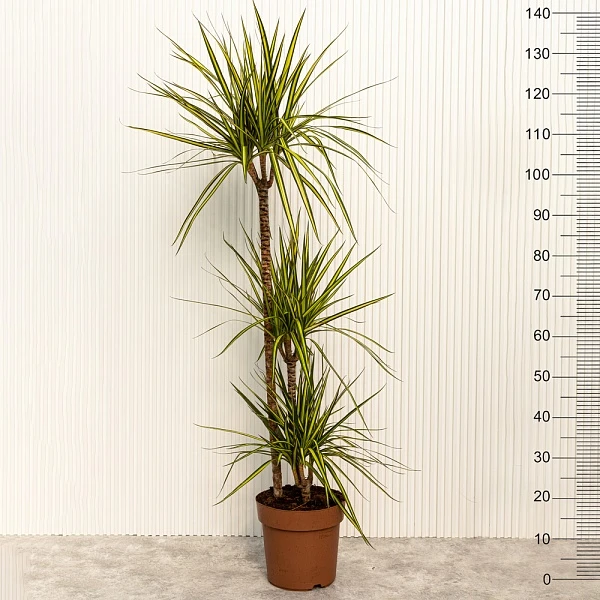 Яркий, жизнерадостный, но при этом редко встречающийся, сорт всем знакомой популярной Драцены маргината. Отличается тонкими контрастными листьями с желтыми и зелеными полосами. Для поддержания насыщенной окраски требуется яркое и ровное освещение. Эффектное растение для озеленения жилых и общественных помещений, кафе и ресторанов. Идеально подходит для интерьеров, где требуется яркое нестандартное решение. Станет замечательным необычным подарком как для опытного растениевода, так и для новичка.