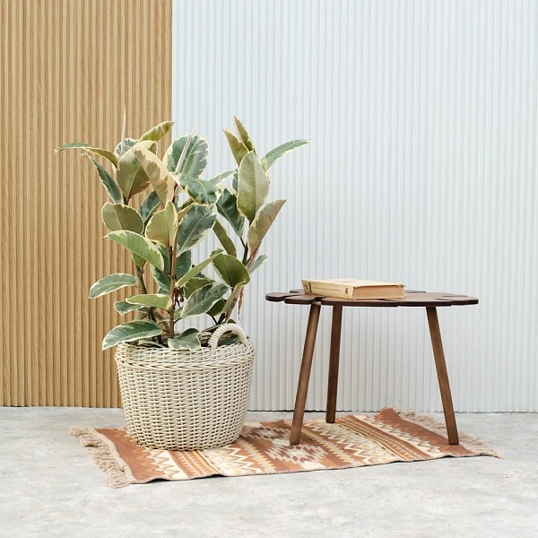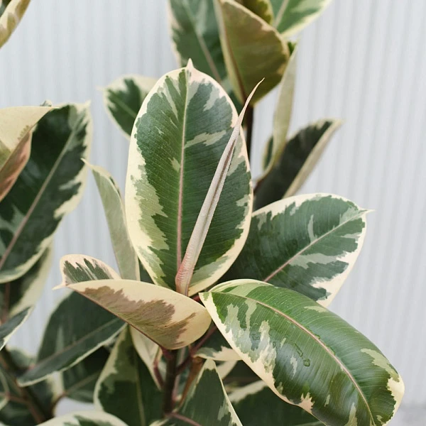 Декоративное растение семейства Тутовые отличается красивыми листьями с ярким зеленым цветом и кремовыми или белыми пятнами. Трехствольный Фикус предпочитает расти в теплом помещении без холодных сквозняков. Ему необходима средняя или высокая влажность воздуха, умеренный полив без переувлажнения. Фикус следует ставить подальше от прямого света, чтобы не повредить листья.