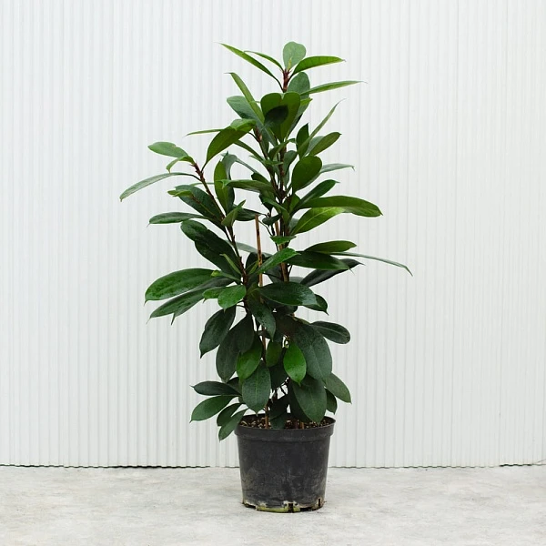 Декоративное комнатное растение с широкими, глянцевыми листьями насыщенного зеленого цвета. Этот Фикус привлекает внимание своим оригинальным видом и может стать эффектным акцентом в интерьере. Любит рассеянный свет и теплые помещения без холодных сквозняков, легко адаптируется к полутени. Его нужно умеренно поливать, допустимо небольшое подсыхание верхнего слоя почвы между поливами.