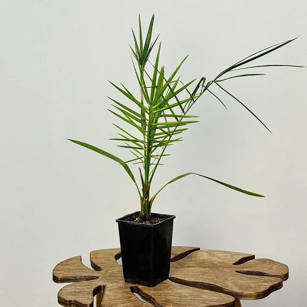 Величественная и элегантная пальма с длинными зеленовато-серыми сложно перистыми листьями. Привносит в любое пространство нотки средиземноморского настроения и уюта. Требует яркого освещения, в зимний период подсветки фитолампами. Чтобы крона была равномерной и красивой, нужно регулярно понемногу поворачивать горшок вокруг своей оси относительно источника света. Полив обильный после просыхания верхнего слоя грунта. Нуждается в регулярном опрыскивании и проветривании.