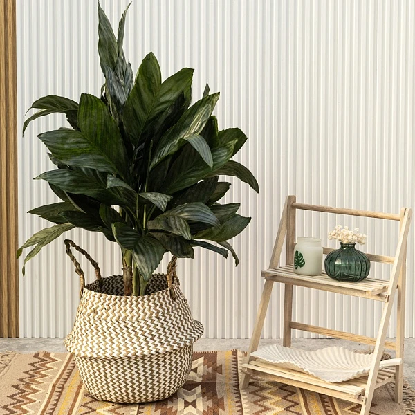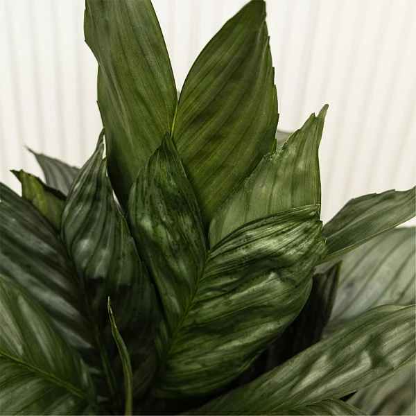 Уникальная и необычная пальма. Её листья плотные, широкие с характерным металлическим блеском на тёмно-зелёном фоне создают прекрасный визуальный эффект и добавляют шарма интерьеру. Этот вид легко переносит затенение, хорошо растёт при искусственном освещении, нуждается в регулярном поливе и опрыскивании. Не переносит прямых солнечных лучей, сквозняков и резких перепадов температур. Зимой температура содержания от +16 до +18℃ с сокращением полива, не допуская пересыхания грунта.