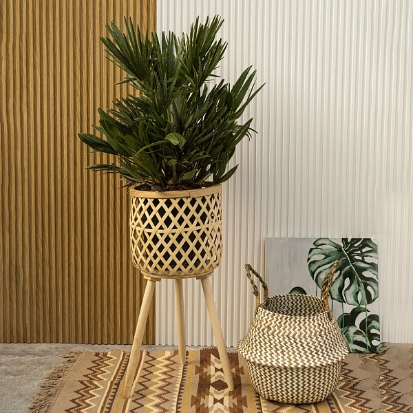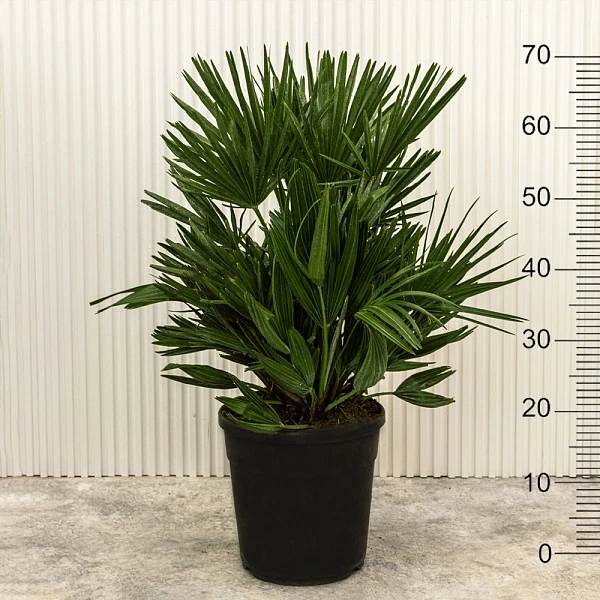 Кустарниковая пальма с красивыми веерными листьями с серебристым оттенком с обратной стороны, отличающаяся медленным ростом и необычной формой кроны. Требует большое количество яркого света, опрыскивание, регулярный полив. В зимнее время температура содержания не выше +15℃. При холодной зимовке полив проводится не чаще двух раз в месяц.