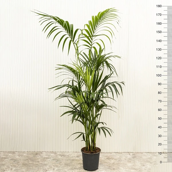 Стильная декоративная, относительно неприхотливая, пальма с крупными, ярко-зелёными перистыми листьями. Для нормального роста и развития ей нужны тепло, достаточное количество рассеянного света и регулярный полив. В зимние месяцы должна находиться при температуре от +15 до +18℃ с сокращением частоты полива, не допуская пересыхания грунта. В зимнее время нужно убирать от отопительных приборов.