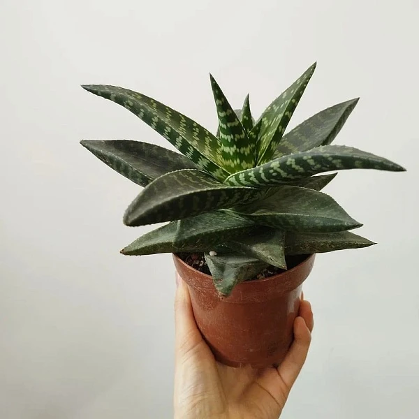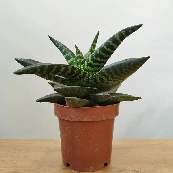 Компактный суккулент с экзотической внешностью имеет заострённые треугольные листья, собранные в плотную розетку. Алоэ Тики Зилла медленно растёт, максимально достигая высоту до 20-30 см. Любит яркий свет с прямыми солнечными лучами и редкий полив, необходимый только после полного просыхания грунта. Растение подходит для создания мини-садиков и флорариумов, отлично вписывается в современные интерьеры. Кроме того, Алоэ обладает лечебными свойствами – его сок заживляет мелкие ранки.