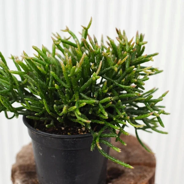 Неприхотливое растение из семейства Кактусовые, внешне напоминающее маленький кустарник с побегами в виде палочек. Рипсалис понравится цветоводам, которые ищут необычного зеленого питомца, и подойдет новичкам. Его можно разместить на подоконнике или сделать украшением тумбы, рабочего или журнального стола. Яркий рассеянный свет и высокая влажность – вот, что любят эти растения. Они оценят соседство с увлажнителем воздуха, ежедневные опрыскивания и умеренный полив по мере просыхания трети грунта. Засухи и переувлажнения субстрата допускать не рекомендуется.