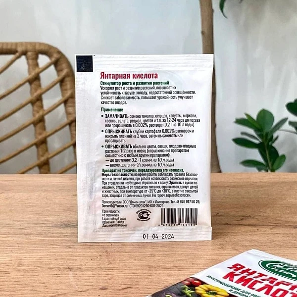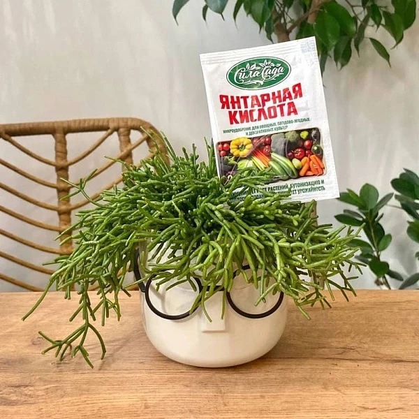 Микроудобрение поможет вашей комнатной зелени вырасти здоровой и цветущей. Янтарная кислота повышает устойчивость растений к засухе, холоду и недостаточной освещённости. Природный стимулятор усиливает иммунитет зелёных и защищает их от вредителей, а также благотворно влияет на почву. В разведённом водой виде ей можно опрыскивать и молодые, и взрослые растения.